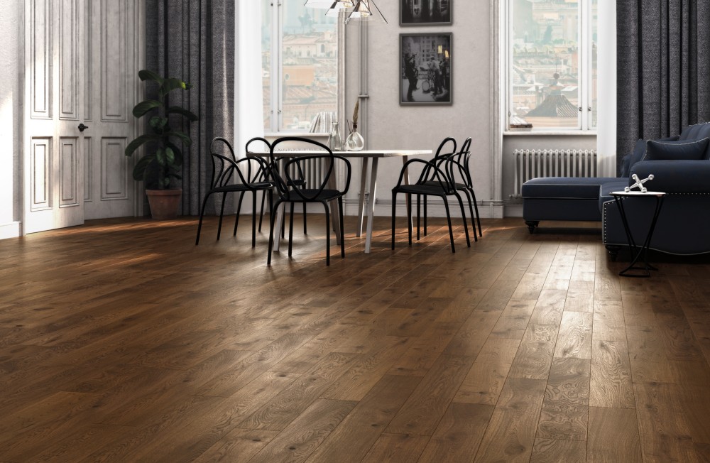 Kolekcja NoLimits to eleganckie podłogi dębowe we wzorze deski 1-rzędowej i bezkompromisowej grubości.